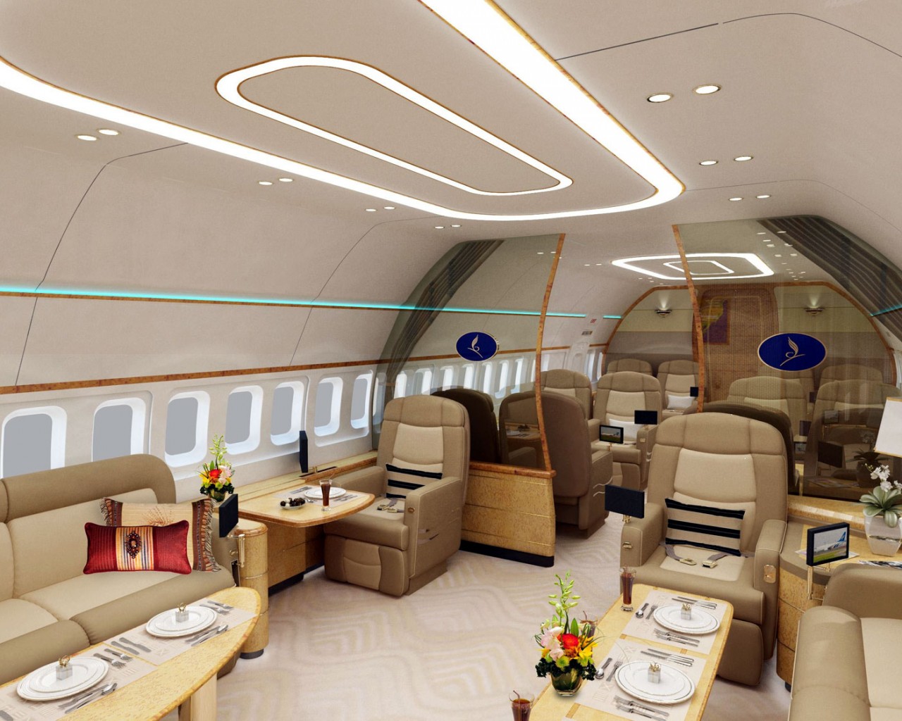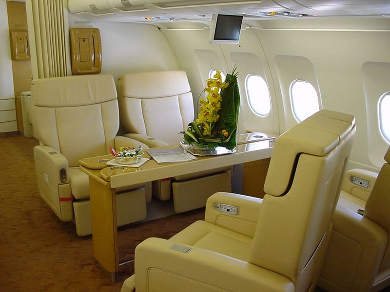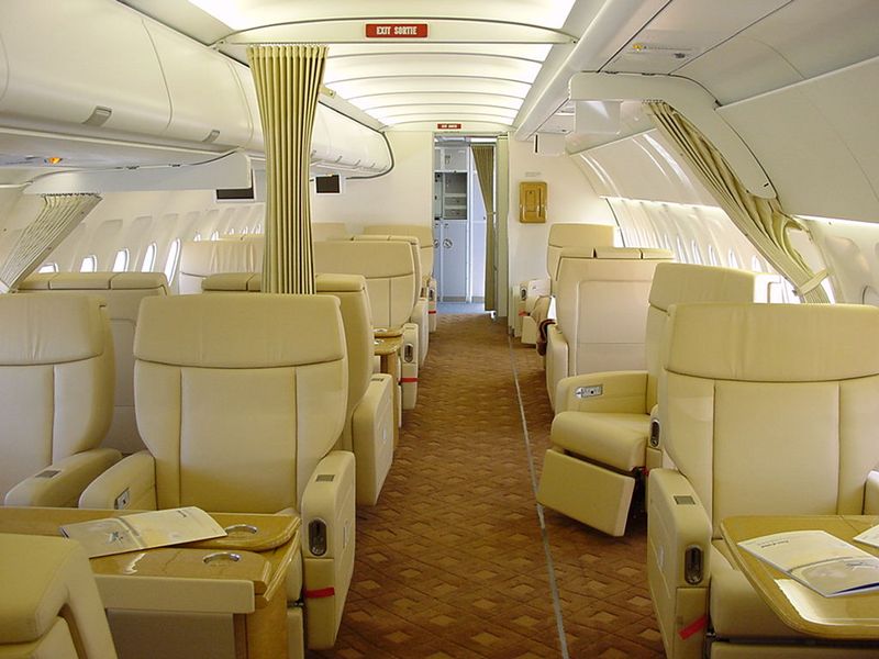A modified version of the commercial A319 aircraft, the A319 CJ is not quite as long, yet can travel further. The corporate version can usually hold up to 19 passengers, but interior configurations can vary hugely. Other iterations (illustrated below) include 29, 34 and 48 seater planes. The cabin in the corporate version is typically divided into VIP accommodation, complete with an office, bathroom, including a stand-up shower, and bed, plus a high-density passenger seating area.